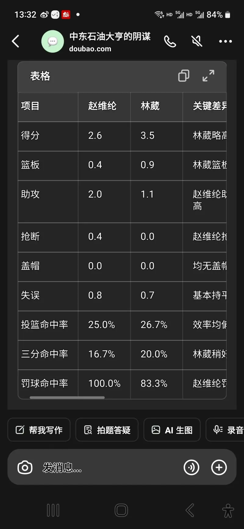 我找豆包问的,如果你觉得不对,可以直接去查原始数据,我主要比较懒。我觉得AI找个数据应该还可以吧。不过赵维纶如果目前上场时间比林葳都少的话,那即战力肯定和林葳是一个数量级的,命中率比林葳低也可以理解