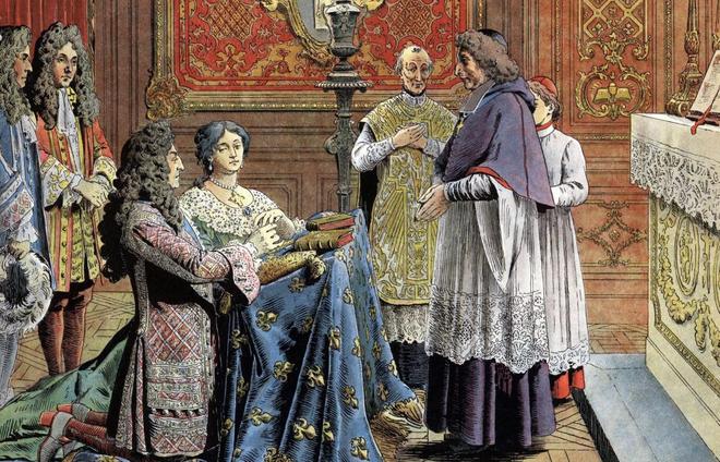 1683年10月9日,路易十四与年近48岁的寡妇弗朗索瓦丝·德·奥比涅秘密结婚。由于两人社会地位悬殊,法律禁止路易十四公开承认这段婚姻,也不允许弗朗索瓦丝戴上王冠,但事实上,她已经是国王的庶妻了。