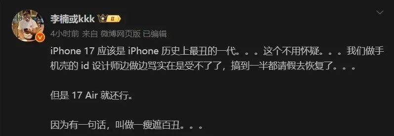 不过,iPhone 17 Pro 系列因外观设计巨变,也让不少网友感到不适应,多次因「丑」登上热搜。