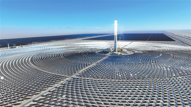 在国家第二批“沙戈荒”基地唯一“光热+”试点示范项目基地——中国绿发金塔多能互补基地项目10万千瓦光热电站,年均可为电网输送14.5亿千瓦时清洁电力,可供约70万户家庭全年使用,每年可节约标准煤约48万吨,减少二氧化碳排放约136万吨;