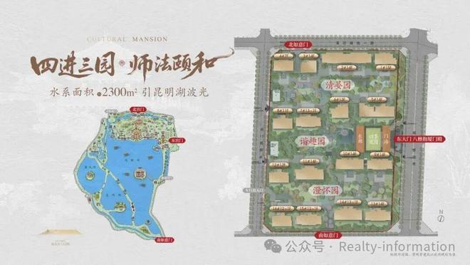 承袭颐和园布局精髓,以“乾坤双璧”布局——以东门为起点,成「东西礼序轴」彰显尊贵;以西北乾位倚山之势,成「南北山水轴」聚气生财,双轴交汇再造天地格局。