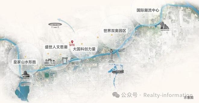 项目南侧俯瞰清河,一线滨水位置。若以堪舆视角俯瞰海淀版图,七条水系蜿蜒如龙,汇聚于地块南侧形成“玉带环腰”之势。北侧燕山山脉连绵为「靠」,形成「负阴抱阳」的贵胄格局;南侧清河蜿蜒而过,呈「玉带环腰」之象,契合传统易学中「背山面水」的至高贵地标准。