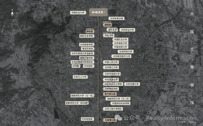文脊上擘布北大、清华、农大、人大等近30所高等学府。另有国家行政学院、中央团校、会主义学院、几十所重点中小学和潜隐近百家功勋级科研机构,百年文海自浸远。